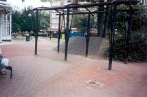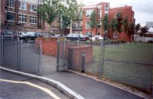 St. Bartholomew’s Hospital Ground, Seward Street. Dismal tarmacked playground, currently out of use and boarded up. Probably site of a 1665 plague pit. On Christmas Eve, 1785, three body-snatchers were apprehended here loading a naked corpse into a hackney carriage. (The Times) ⅓ acre. This was used for the interment of the unclaimed bodies. After being closed it was let as a carter's yard until it was laid out as a public playground by the Metropolitan Public Gardens Association in 1891. It is maintained by St. Luke's Vestry . (Holmes) |
