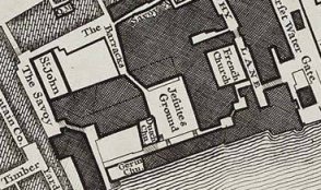 | Cemetery of old St. Mary le Strand on the site of Somerset House. This was enlarged in 1355. |
