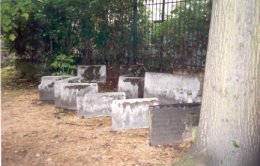 Hampstead Road. In use from around 1780 - 1853 as an extra-parochial ground for St James Piccadilly. Quite an extensive area, now with tennis courts and a children's playground. Rather gloomy. Gravestones around the edge, some in the herringbone pattern described above - a speciality of this part of the London Borough of Camden. The improvements mentioned by Holmes were the resiting of Cardington Street, probably due to the enlargement of Euston Station, during the 1870s or 80s. This belongs to the parish of St. James, Piccadilly. It was laid out as a public garden in 1887, and is maintained by the St. Pancras Vestry, a large slice at the east end having been taken off for public improvements. The remaining portion measures about 3 acres. |