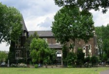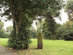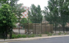 St. Bartholomew's Churchyard, near Cambridge Road. Church founded 1844. Ground closed 1855. Shown as recreation ground on O.S. of 1984. Church now converted into flats. Obelisk remains and a couple of broken stones in park and play area enclosed by 19thc railings. Useful break in very built-up area. Nearly an acre. This was laid out by the Metropolitan Public Gardens Association in 1885, and is maintained by the London County Council. It is immensely appreciated. (Holmes) |